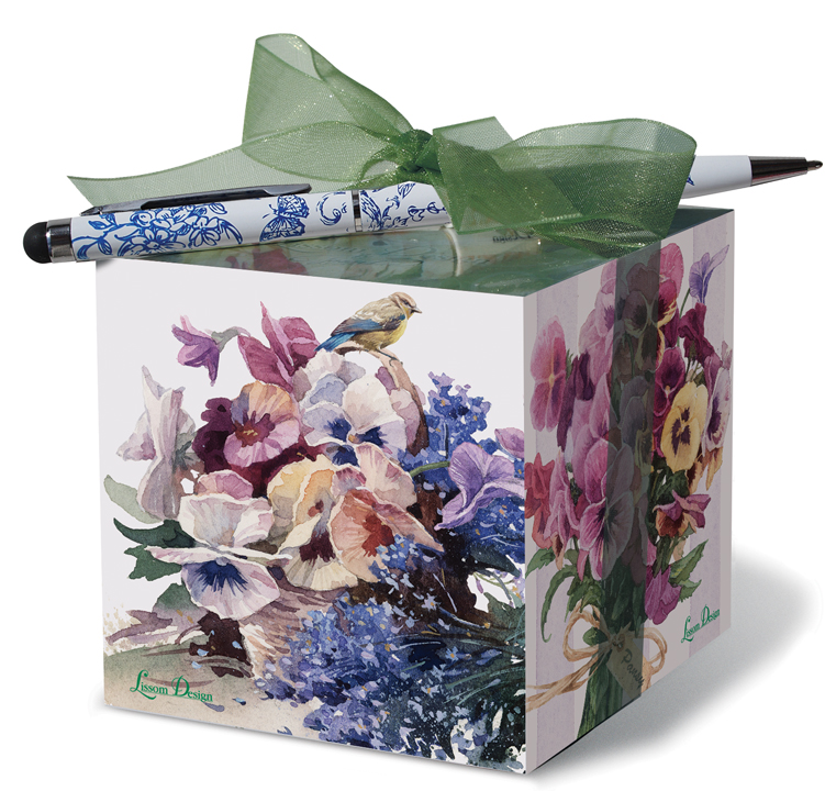 Block size: 3" x 3" x 3". 580 sheets. With designer pen.