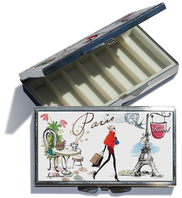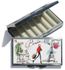 Box size: 2" x 3.25" x 0.5". Metal case with epoxy cover. With 7 compartments.